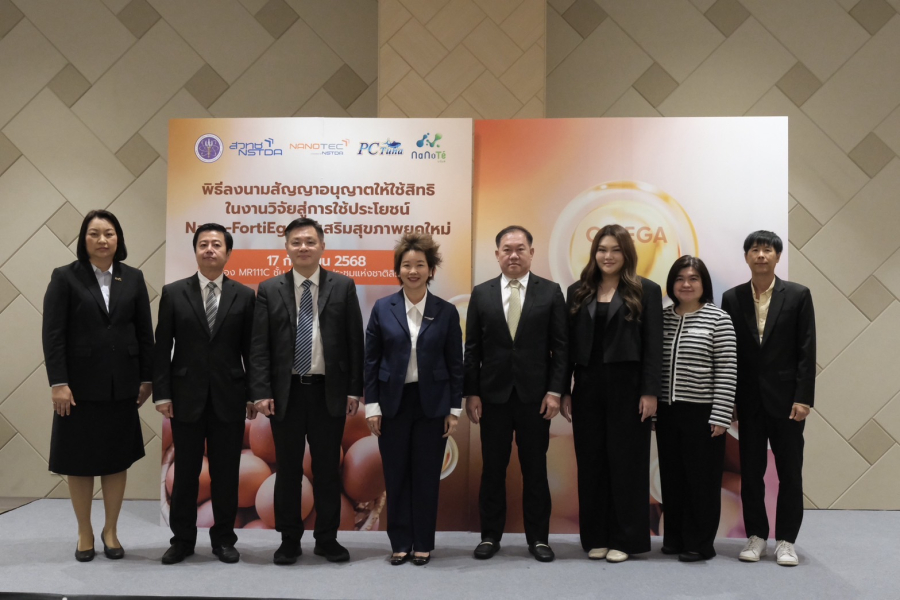 วันที่ 17 กันยายน 2568 ณ ศูนย์การประชุมแห่งชาติสิริกิติ์ – กระทรวงการอุดมศึกษา วิทยาศาสตร์ วิจัยและนวัตกรรม สำนักงานพัฒนาวิทยาศาสตร์และเทคโนโลยีแห่งชาติ (สวทช.) โดย ศูนย์นาโนเทคโนโลยีแห่งชาติ (นาโนเทค) ลงนามความร่วมมือกับนาโนเต้ ในเครือพีซี ทูน่า ต่อยอดของเหลือในกระบวนการผลิตทูน่ากระป๋อง/ปลากระป๋องสู่สารเสริมอาหารไก่ไข่ สู่การผลิต “ไข่เสริม (Fortified eggs) ที่มีโอเมก้า 3 สูง ปูทางรับเทรนด์อาหารอนาคต เตรียมขยายผลภาคสนามใน 3 พื้นที่ ได้แก่ สมุทรปราการ สมุทรสาคร และฉะเชิงเทรา หวังยกระดับคุณภาพทั้งผู้บริโภค เกษตรกร และอุตสาหกรรมพร้อมกัน
